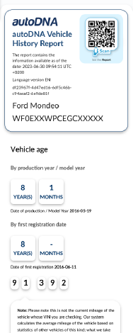 Download the reportOur basic report can be of great help when you need to check a second-hand car. The data it contains is the essential basis you can use to learn of the car’s history. Here is what we include in the autoDNA report: